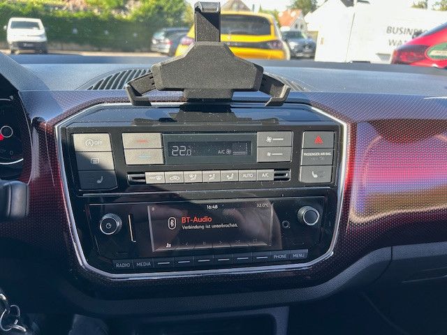 Dieser gepflegte VW up aus 2018 bietet als kompakter Stadtflitzer eine beeindruckende Kombination aus Effizienz und Komfort. Der 3-Zylinder Benzinmotor mit 999 ccm Hubraum und 116 PS sorgt für spritzige Fahrleistungen bei gleichzeitig niedrigem Verbrauch. Die rote Außenlackierung verleiht dem Fahrzeug einen sportlichen Charakter, während der schwarze Stoffinnenraum praktisch und ansprechend gestaltet ist.Die Ausstattung überzeugt mit automatischer Klimaanlage, beheizten Vordersitzen und einem Panorama-Glasdach für lichtdurchflutetes Fahren. Für Sicherheit sorgen Front- und Seitenairbags, ESP, ABS sowie Parksensoren hinten. Das Fahrzeug verfügt über die umweltfreundliche Euro-6-Norm und trägt die grüne Umweltplakette.