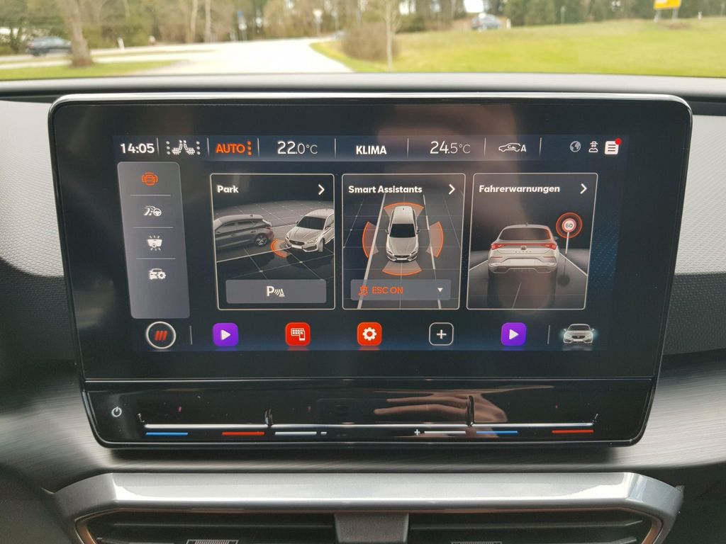 6 Lautsprecher, Airbag Beifahrerseite abschaltbar, Airbag Fahrer-/Beifahrerseite, Antriebs-Schlupfregelung (ASR), Außenspiegel elektr. verstell-, heiz- und anklappbar mit Spiegelabsenkung und Welcome Light, Blinkleuchten LED in Außenspiegel integriert, Doppeltonhorn, Einparkhilfe hinten, Einstiegsleisten (Aluminium) vorn, beleuchtet, Fahrassistenz-System: Adaptive Fahrwerksregelung (DCC), Fahrassistenz-System: Fahrprofilauswahl (CUPRA Drive Profile), Fensterheber elektrisch vorn + hinten mit Komfortschaltung, Fensterzierleisten schwarz hochglänzend, Gepäckraumabdeckung / Rollo, Heckleuchten LED mit dynamischem Blinklicht, Heckleuchten Voll-LED mit dynamischem Lichtband (Infinite Light), Isofix-Aufnahmen für Kindersitz an Rücksitz, Karosserie: 5-türig, Klimaanlage Climatronic 3-Zonen, Kombiinstrument digital (virtual cockpit), Kopf-Airbag-System, Lendenwirbelstütze Sitz vorn links, verstellbar, Lendenwirbelstütze Sitz vorn rechts, verstellbar, Licht- und Sicht-Paket, LM-Felgen, Mild-Hybrid 110 kW (Motor 1,5 Ltr. - 110 kW eTSI), Mittelkonsole vorn mit Mittelarmlehne, Becherhalter, Ablagebox und Luftausströmer hinten, Mobile Online Dienste Cupra Connect, Notrufsystem, Otto-Partikelfilter (OPF), Parkbremse elektrisch, Radioempfang digital (DAB+), Rücksitzlehne geteilt/klappbar (1/3-2/3), Schadstoffarm nach Abgasnorm Euro 6d, Seitenairbag, Seitenairbag vorn mitte (Central Airbag), Seitenscheiben hinten und Heckscheibe abgedunkelt, Sitz vorn links höhenverstellbar, Sitz vorn rechts höhenverstellbar, Sitzbezug / Polsterung: Stoff, Sonnenblende links mit Spiegel (beleuchtet), Sonnenblende rechts mit Spiegel (beleuchtet), Sport-Schalensitze vorn mit integrierten Kopfstützen, Sprachsteuerungs-System, Start/Stop-Anlage, USB-Ladeanschlüsse (2-fach, Typ C) für 2.Sitzreihe, USB-Schnittstelle vorn (2-fach, Typ C), Verzurrösen Koffer-/Laderaum, Warnanlage für Sicherheitsgurt-System, Wärmeschutzverglasung