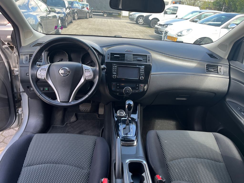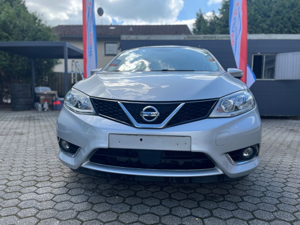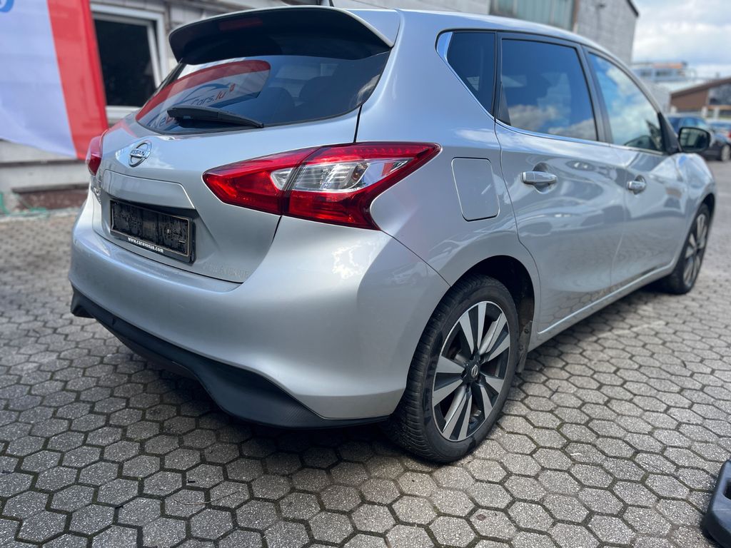 3. Bremsleuchte, Airbag Beifahrerseite abschaltbar, Airbag Fahrer-/Beifahrerseite und Seitenairbag vorn, Audio-/Bordcomputerbedienung am Lenkrad, Ausstattungs-Paket: Nissan Connect, Automatische Fahrlichtschaltung, Außenspiegel elektr. verstellbar, Außenspiegel heizbar, Außenspiegel Wagenfarbe, Blinkleuchte in Außenspiegel integriert, Bordcomputer, Bremsassistent (Nissan Brake-Assist), Fahrassistenz-System: Autonomer Notbrems-Assistent, Fahrassistenz-System: Kurvenbremskontrolle (Aktive Spurkontrolle), Fahrer-Informations-System (FIS) mit Farbdisplay, Fensterheber elektrisch vorn + hinten, Fernentriegelung Tankklappe, Frontscheibe Verbundglas, Gepäckraumabdeckung / Rollo, Getränkehalter hinten, Getränkehalter vorn, Gurtstraffer, Handschuhfach beleuchtet, Heckscheibe heizbar, Innenspiegel mit Abblendautomatik, Isofix-Aufnahmen für Kindersitz, Karosserie: 5-türig, Kindersicherung, Klimaautomatik 2-Zonen, Kopf-Airbag-System, Kopfstützen vorn und hinten verstellbar, Lendenwirbelstütze Sitz vorn links und rechts, Lenksäule (Lenkrad) höhen-/längsverstellbar, Leseleuchte vorn, LM-Felgen, Luftdüsen hinten, Mittelarmlehne hinten, Mittelarmlehne vorn verschiebbar, Motor 1,2 Ltr. - 85 kW 16V KAT, Nebelschlussleuchte, Reifen-Reparaturset, Reifendruck-Kontrollsystem, Rücksitz geteilt/klappbar, Schadstoffarm nach Abgasnorm Euro 6, Schalt-/Wählhebelgriff Leder, Schaltpunktanzeige, Scheibenwischer mit Intervallschaltung, Sitz vorn links höhenverstellbar, Sitz vorn rechts höhenverstellbar, Sitzbezug / Polsterung: Teilleder, Sitzheizung vorn, Sonnenblenden mit Spiegel, Start/Stop-Anlage, Steckdose (12V-Anschluß) in Mittelkonsole, Türgriffe innen verchromt, Verglasung hinten abgedunkelt, Wärmeschutzverglasung mit UV-Schutz
