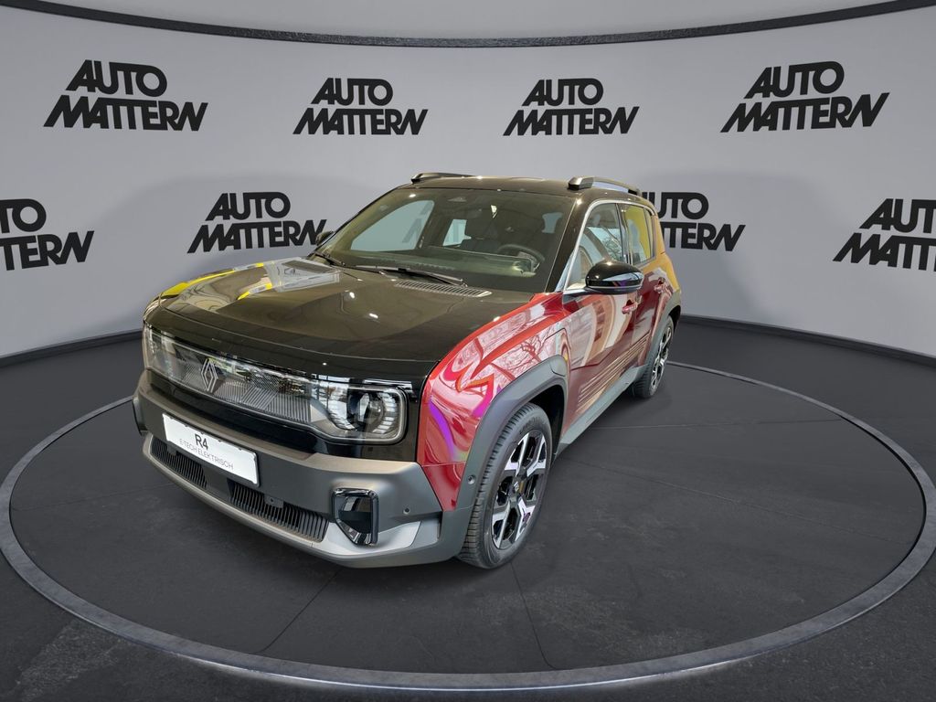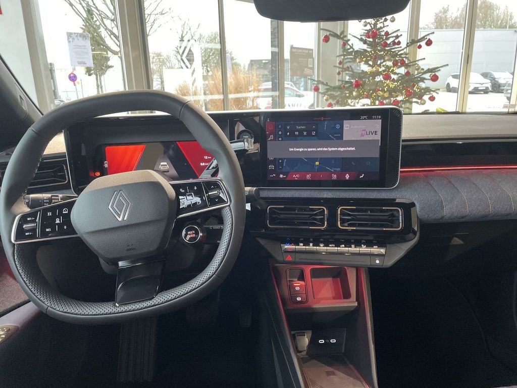 Evolution, • 2 USB-C Anschlüsse in der Vorderreihe, • 3 Kopfstützen in der 2. Sitzreihe, • 3-Punkt-Sicherheitsgurte auf allen Plätzen der Rücksitzbank, • 18-Zoll Stahlräder mit Zweifarb-Radabdeckung „Jogging“, • AC 11kW On-board Charger, • Antiblockiersystem mit elektronischer Bremskraftverteilung, • Außenspiegel elektr. einstell- und beheizbar, • Außenspiegel in Schwarz, • Beifahrerairbag deaktivierbar, • Connected Services, • digitales Tachodisplay 7 Zoll, • eCall-Notrufsystem, • elektrische Fensterheber vorne und hinten mit Impulsschaltung und, Klemmschutz, • elektronische Parkbremse, • elektronisches Stabilitätsprogramm (ESP) mit Berganfahrhilfe, • Einparkhilfe hinten, • Fahrer- und Beifahrerairbag, • Fernlichtassistent, • Geräuschsimulator, • Gurtwarner für vordere und hintere Sitzreihe, • Heckscheibe beheizbar, • Innenharmonie Evolution, • Isofix-i-Size-Kindersitzbefestigung, • getönte Seitenscheiben hinten, • Klimaautomatik, • Kunststofflenkrad, • Ladekabel Mode 3, • LED-Tagfahrlicht, • Licht- und Regensensor, • Mittelkonsole mit Staufach und Mittelarmlehne, • Müdigkeitswarner, • Notbremsassistent mit Fußgängererkennung und Kreuzungsassistent, • Notfall-Spurhalte-Assistent, • OpenR link Infotainmentsystem 10-Zoll mit kabelloser, Smartphone-Replikation, • Reifenreparaturset, • Rückfahrkamera, • Seitenairbags und Windowbags vorne, • Sicherheitsabstand-Warner, • Stoffpolsterung in Grau gesteppte Textilbezüge, mit blauen, weißen, und roten Nähten, • Tempopilot mit Geschwindigkeitsbegrenzer, • Verkehrszeichenerkennung mit Geschwindigkeitswarner, • Voll-LED-Scheinwerfer LED Pure Vision, • Wärmepumpe, • ZentralverriegelungTechno (zusätzlich/abweichend zu Evolution), • 18-Zoll Leichtmetallräder „Sixties“ schwarz glanzgedreht, • adaptiver Tempopilot, • Außenspiegel elektr. einstell- beheizbar und anklappbar, • digitales Tachodisplay 10 Zoll, • elektronische Parkbremse mit Autohold, • Fahrersitz höhenverstellbar, • Frontgrill und Renault Logo beleuchtet, • getönte Seitenscheiben hinten, stark getönte Heckscheibe, • Haifischantenne, • induktive Smartphoneladefläche, • Innenspiegel automatisch abblendend, • Lenkrad in Lederoptik, • LED-Beleuchtung vorne, • Innenharmonie Techno, • Multi-Sense mit Ambientebeleuchtung zur individuellen Einstellung der, Fahrzeugcharakteristik, • OpenR link Infotainmentsystem 10,1-Zoll mit Soundsystem Arkamys Classic