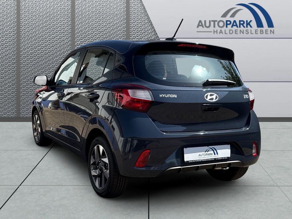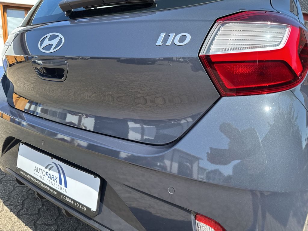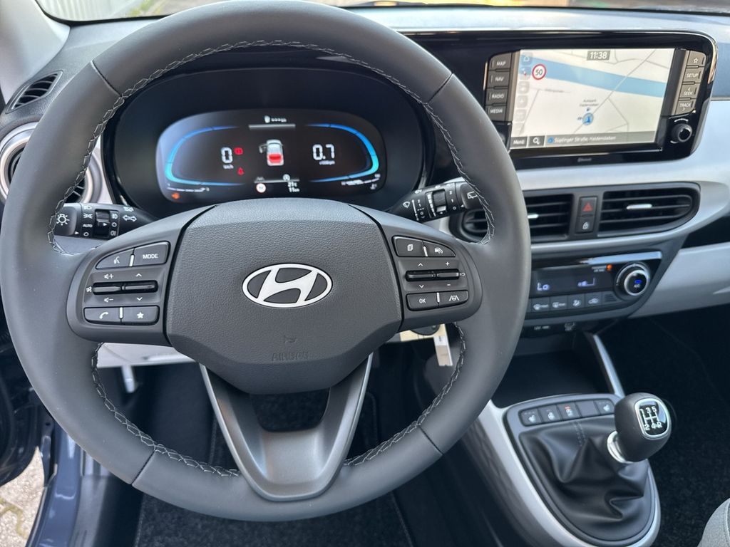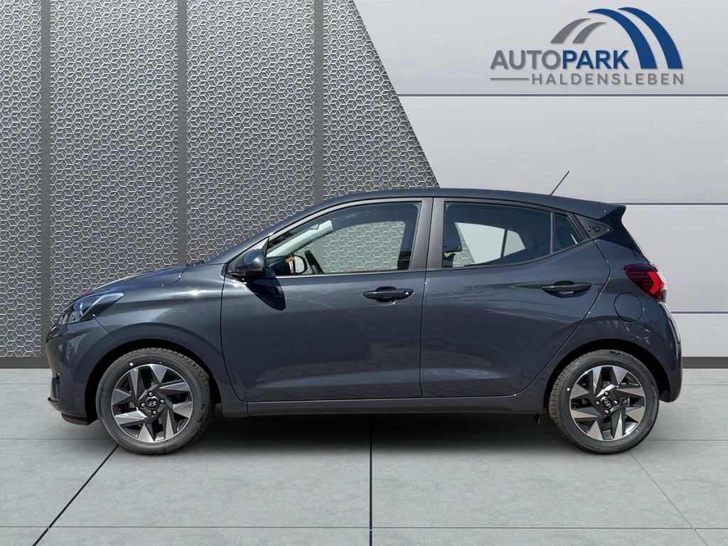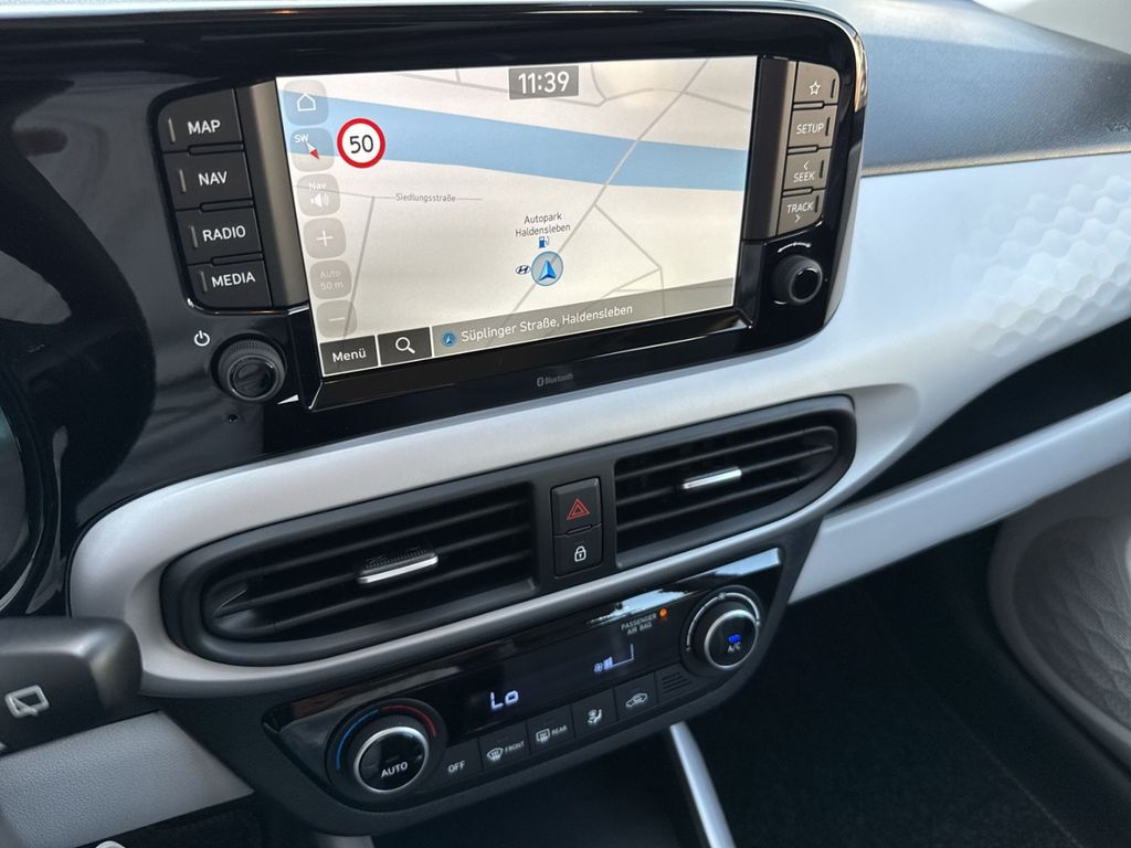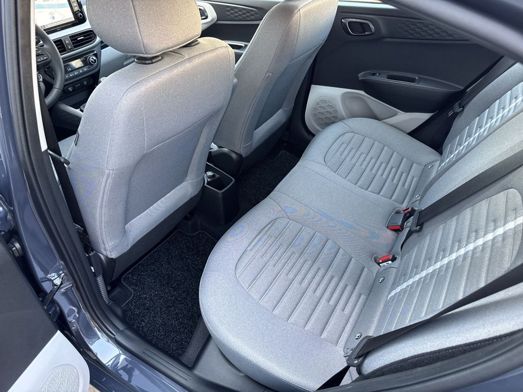 Dieser gepflegte Hyundai i10 aus 2025 präsentiert sich als idealer Begleiter für den Stadtverkehr und darüber hinaus. Mit nur einem Vorbesitzer und lückenloser Servicehistorie bietet der Kompaktwagen zahlreiche moderne Ausstattungsmerkmale. Der 1,2-Liter-Benzinmotor mit 79 PS überzeugt durch seine Wirtschaftlichkeit und erfüllt die Euro-6-Norm. Die graue Metallic-Lackierung harmoniert perfekt mit dem grauen Stoffinterieur.Die Automatik-Klimaanlage sorgt für angenehmes Raumklima, während das digitale Cockpit mit Navigationssystem und Touchscreen für moderne Konnektivität steht. Apple CarPlay und Android Auto sind ebenso an Bord wie Bluetooth und USB-Anschlüsse. Sicherheit wird großgeschrieben mit zahlreichen Assistenzsystemen wie Spurhalteassistent, Müdigkeitserkennung und Verkehrszeichenerkennung.