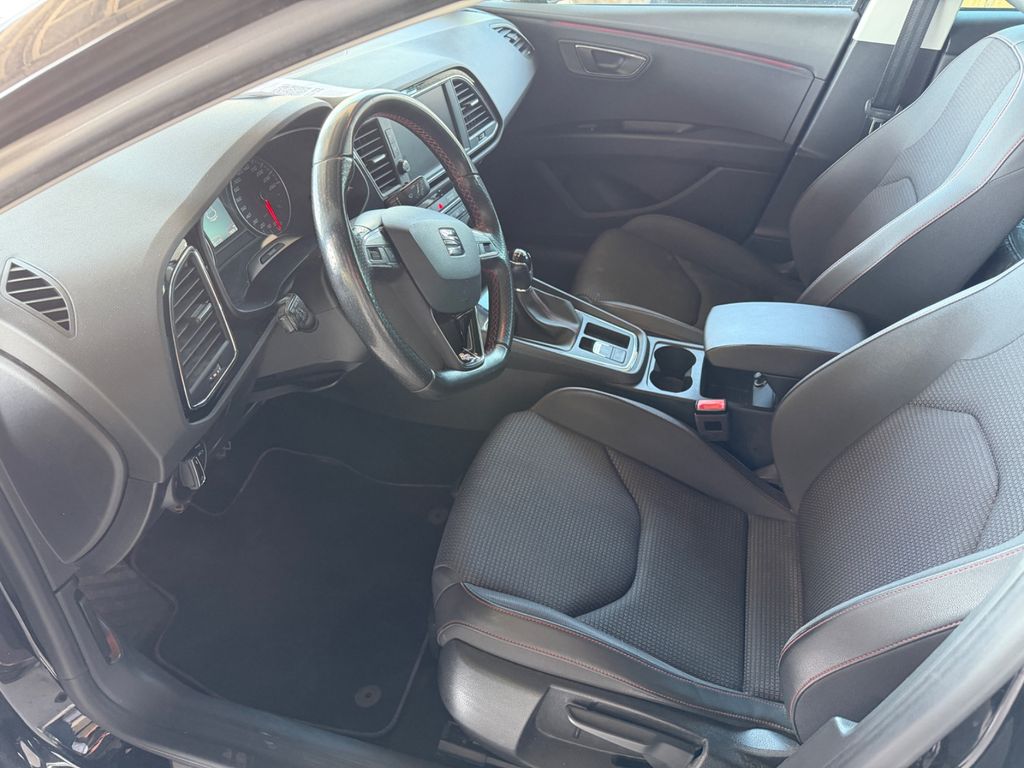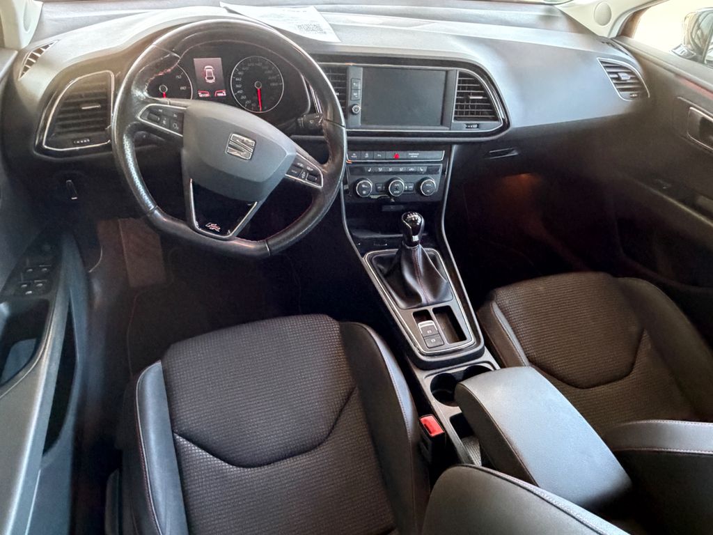 Ablagetasche an Vordersitzlehnen, Airbag Beifahrerseite abschaltbar, Airbag Fahrer-/Beifahrerseite, Antriebs-Schlupfregelung (ASR), AUX-IN-Anschluss und 2 x USB-Anschluss, Außenspiegel elektr. anklappbar, Außenspiegel elektr. verstell-, heiz- und anklappbar, beide, Außenspiegel mit Spiegelabsenkung, rechts, Außenspiegel und Türgriffe außen in Wagenfarbe, Außentemperaturanzeige, Blinkleuchten LED in Außenspiegel integriert, Bordcomputer, Bremsassistent, Doppelscheinwerfer, Elektron. Differentialsperre (EDS), Fahrassistenz-System: Berganfahr-Assistent (Hill-Holder), Fahrassistenz-System: Berganfahr-Assistent und Elektron. Differentialsperre, Fahrassistenz-System: Fahrprofilauswahl (SEAT Drive Profile), Fahrassistenz-System: Umfeldbeobachtungssystem (Front assist) mit City-Notbremsfunktion, Fensterheber elektrisch hinten, Handschuhfach beleuchtet, Heckleuchten LED, Innenausstattung: Chrom-Applikationen, Isofix-Aufnahmen für Kindersitz, Karosserie: 5-türig, Klimaanlage Climatronic 2-Zonen, Knieairbag Fahrerseite, Kopf-Airbag-System, Kopfstützen hinten (3-fach), Kopfstützen vorn verstellbar, Lendenwirbelstütze Sitz vorn links, verstellbar, Lendenwirbelstütze Sitz vorn rechts, verstellbar, Lenkrad (Sport/Leder), LM-Felgen, Mittelkonsole vorn mit Mittelarmlehne, Becherhalter, Ablagebox und Luftdüsen hinten, Modellpflege, Motor 1,5 Ltr. - 110 kW 16V TSI ACT, Otto-Partikelfilter (OPF), Parkbremse elektrisch, Reifen-Reparaturset, Reifenkontroll-Anzeige, Rücksitzlehne geteilt/klappbar (1/3-2/3), Schadstoffarm nach Abgasnorm Euro 6d-TEMP, Schalt-/Wählhebelgriff Leder, SEAT Media-System Plus, Seitenairbag, Seitenscheiben hinten und Heckscheibe abgedunkelt, Sitz vorn links höhenverstellbar, Sitz vorn rechts höhenverstellbar, Sonnenblende links mit Spiegel (beleuchtet), Sonnenblende rechts mit Spiegel (beleuchtet), Sport-Fahrwerk FR / Cupra, Sportsitze vorn, Start/Stop-Anlage, Stau-/Ablagefach unter Sitze vorn, Steckdose (12V-Anschluß) vorn, Stoßfänger lackiert, Wärmeschutzverglasung, Seitenscheiben hinten und Heckscheibe abgedunkelt